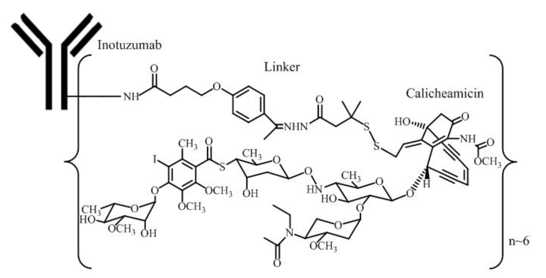 Inotuzumab이라는 항체에 ozogamicin이라는 약물이 붙어있습니다.