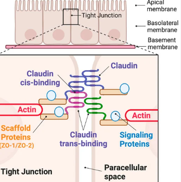 이때 세포 사이에서 단단히 붙게하기 위한 단백질이 claudin 입니다.
