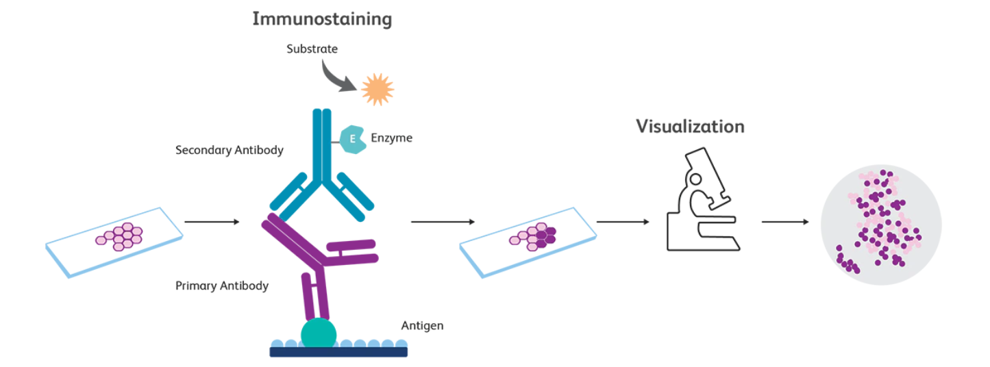 이렇게 선택적인 바이오마커를 염색하는 방법을 Immunostainint(면역염색) 이라고 부른다.