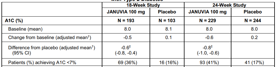 플라시보 군에 비해서 자누비아를 투여한 군이 좋은 것을 볼 수 있다.