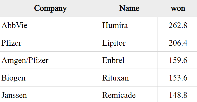 읽으면서 느꼈겠지만, 1위, 3위, 5위는 모두 TNF-alpha를 타겟하는 약이다.