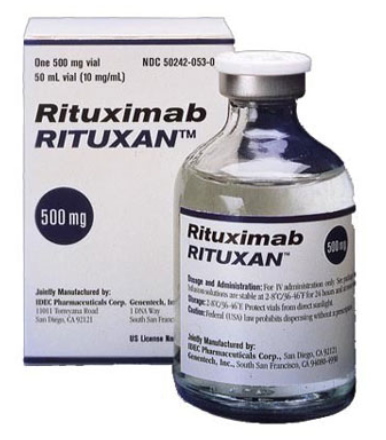 CD20이라는 B세포 특이적인 단백질에 붙어서 비정상 B세포를 죽이는데 기여한다.