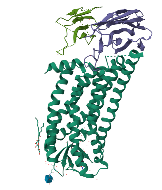 GPCR 이라고 하는 세포막 단백질 군 중 하나인데요, 이 단백질은 결합 파트너가 붙으면 구조가 변화해서 세포 내에 신호를 보내는 역할을 합니다.