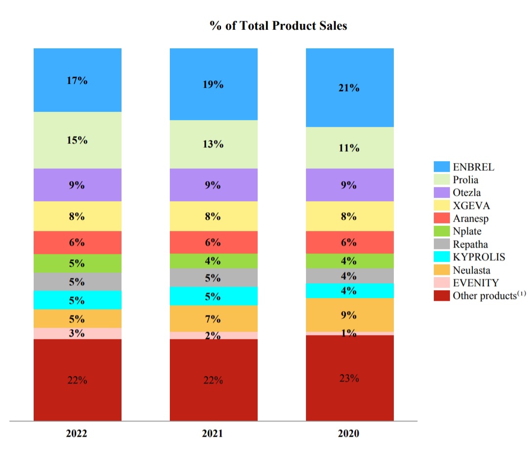 암젠 Annual report보면 판매하는 약 중 엔브렐이 압도적 1위입니다.